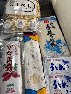 お疲れさまっ🍺 しゃちょさんが五島列島のお土産🏝️ 五島うどんに、あごたし、 ふしめん❓初めてみたけど、 短いうどんみたいな、、 たくさん お土産、ありがと☺️ 今日も乱舞にてわぃわぃしましょ🥂✨