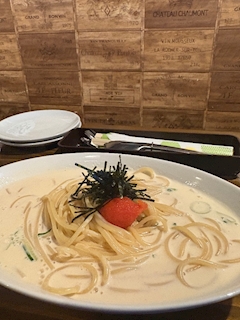 お疲れさま〜🙌 ココの明太子クリームパスタ🍝 めちゃくちゃ美味しいらしく、 クリーミーでめちゃくちゃ美味しかった🤭 また食べたいなっ💜 今日も乱舞にてわぃわぃしましょ🤗