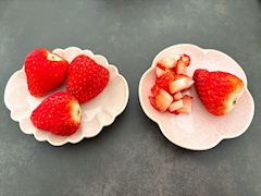 いちご頂いたからワンコにもお裾分けしたよー🐶 細かく切ってね🍓 うちの子たちみんな食いしん坊🥹 予約投稿ですー おやすみー