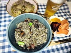 中学生かよっていう ドンキのスエット上下で 病院 ださ。笑 ユニクロのスエットめちゃきてたけどね イカ墨の炊き込みご飯まだあるわー あれ?これのせたっけ? 記憶にない