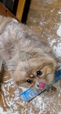 きゃーーーーー 小麦粉 嵐 真っ白 やられたぁ😭 でも 可愛くて❤️ 叱ることが出来ぬꉂ🤣𐤔 お風呂🛀入れて 元通りに🐶 疲れたァ 今からのんびり タイムキタ━(゚∀゚)━!