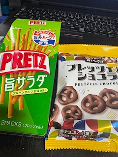 こんにちは😃 プレッツェル🥨うまっ🩵 午後からもがんばろっ💪