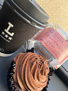 お疲れ〜🫡 めちゃくちゃ寒い❄️一日だったねー💦 ホットコーヒー☕️とローソン&GODIVAコラボケーキ🍰🧁 ほっこり😳 お疲れさま〜🩵