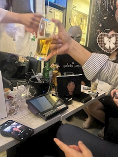 やっとゆっくり書ける〜😂😂 ケーキのときのみんなが歌ってくれた動画あるけど、動画にスタンプとか上手く出来ないから載せれない。笑 とりあえずお写真載っけてくね🤭❤️ はい!タツヤ氏の必殺かんぱーい😆笑 ぽっくんと❣️❣️お気付きでしょうか、、、私の手元、、 笑。タツヤ氏からレアグッズ頂きました🤣ちなみにぽっくんもおそろでつけてる🤣🫶笑 そしてピロピロさんのポーチも!!ちなみにピロピロさん、カラテカさんの着てる服はれみさんがみんなにプレゼントした服だよ〜✨ジェラピケ、可愛いねぇ💓 ポーチはもちろんタツヤ氏からです😆❤︎笑タツヤ氏からのグッズ、鞄に入っててどこ行くにも一緒に行動してます🫰🏻www この日はタツヤ氏と、ちょっと真面目な話もして…なんか飲み方もめちゃめちゃスマートになってて😳笑声が大きいからってぽくまる師匠からマイクオフの指示があり、ついにアカペラになって笑初めて会った日から感慨深いですね👏❤️とにかくこれからも無双しまくってください、陰ながら応援してます😂笑 カラテカさんはエイリアンマスクつけたり脱いだり笑でもめちゃイケメンー😆☝️みんな、本当に気遣いの人たちだなぁと🥹なんならカラテカさんとはSPでやり取りはしていたけど初対面なのにきてくれて😭お優し🥹❣️ 大人になってこんな楽しくいれる友達に出会えるって素晴らしいことだよね😊見てるこちらがほっこりする🥰笑 れみさんのブログに書いてあったけど…ほんとF4感出てる🤭❤️笑 https://sp.pokepara.jp/aichi/m203/a225/shop6396/gal/667976/blog/diary_40053586.html(あ、ここに書いてあるよ🤭笑) 全員で記念写真〜☺️💓💓 本当にありがとうございました🥹 ほんとは葵ママもきてくれる予定だったんだけどね、都合が悪くなり💦また近いうちに会えるかと☺️✨ 5月はタツヤ氏のバースデーもあるからね🎂❤︎ 長くなりましたが、これ以上はまとまらなくなるので笑とにかく全員が全員、多忙な中予定合わせてくださりありがとうございました🫰🏻❤️ 一緒に盛り上げてくれたキャストさんも、ありがとうございました☺️